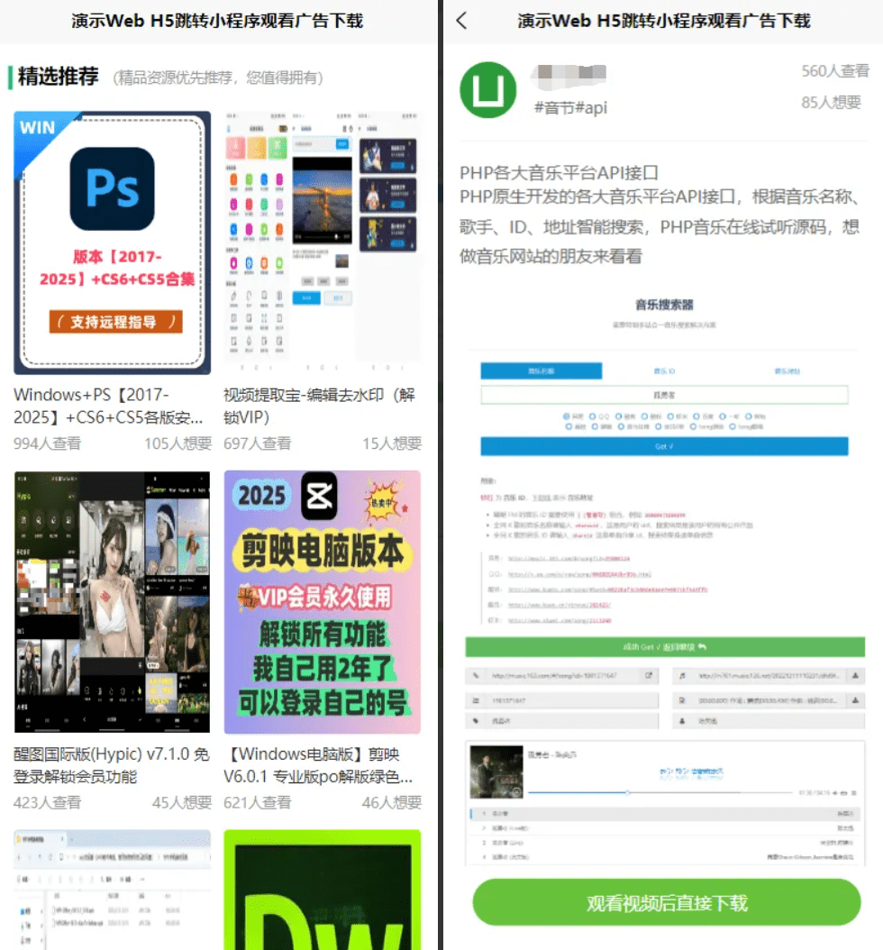 会员源码网 会员专属/小程序源码 Web/H5跳转小程序观看激励广告后下载 系统源码 实现流量变现赚取广告收益 https://svipm.com/21087.html